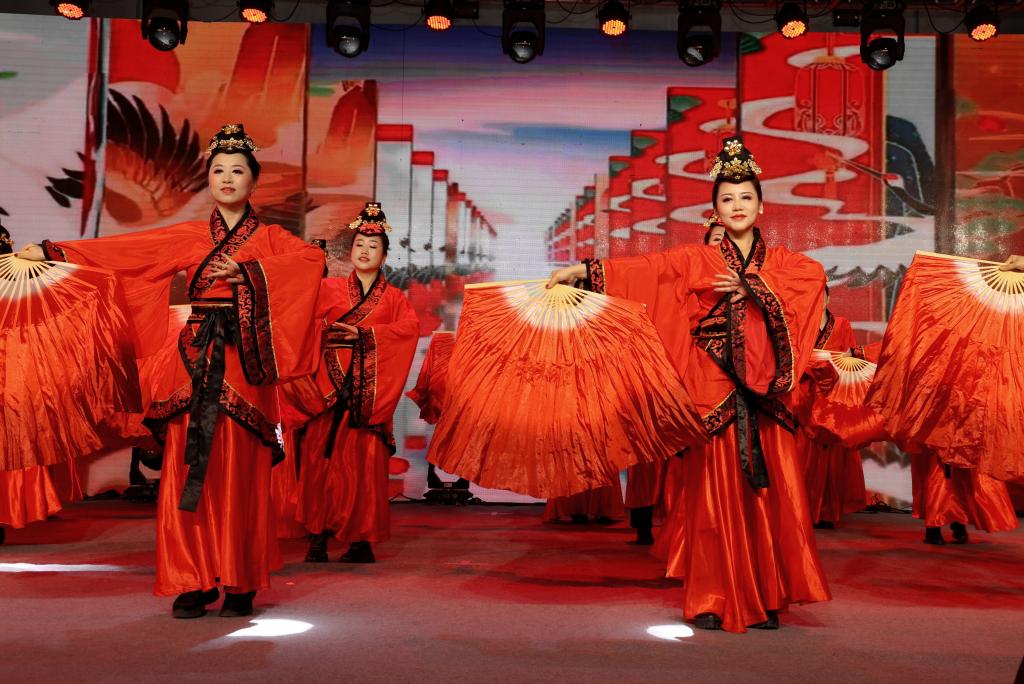 演出結束后,公司領導走上舞臺,與演出人員合影留念,同慶龍年新春。