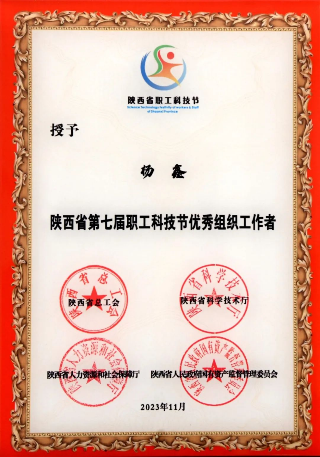 陜西省第七屆職工科技節優秀組織工作者