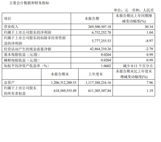 寶光股份2022年一季度主要財務指標